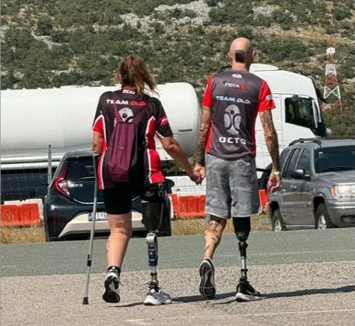 Il 2 gennaio 2022 decisi però, una volta per tutte, di dire basta .Ripartii dal punto più basso, dal fondo più profondo: il lago di Bracciano (sembra una metafora, ma è stato reale). Da lì iniziò un cambiamento totale del mio stile di vita, insieme a Emiliano Malagoli e Chiara Valentini. Partecipai al mio primo Campionato Italiano “Octo Cup”. L’11 novembre 2022, all’EICMA durante le premiazioni, conobbi Antonella. Anche lei, come me, amputata alla gamba destra. È venuta a vivere con me: siamo una coppia molto affiatata, dove l’aiuto reciproco è una forza concreta.