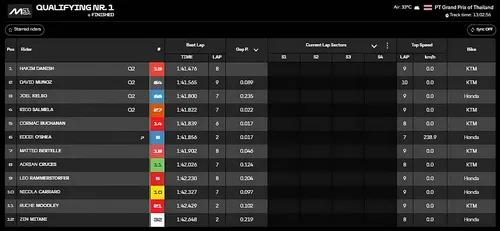 Tra i protagonisti di questo primo turno anche Matteo Bertelle, caduto senza conseguenze nelle FP2 (turno dominato dagli spagnoli, con Almansa in vetta), ed il rookie Rico Salmela, a quota due incidenti tra ieri e oggi. Non dimentichiamo dalle Practice di ieri il super salvataggio di Hakim Danish! Ma adesso bisogna pensare alle quattro posizioni utili per il turno successivo, non senza qualche "furbata" in pista. Ma sarà proprio l'esordiente malese il migliore di questa sessione, con un super giro finale che gli garantisce la Q2 e fa esultare il team. A pochi centesimi troviamo David Munoz, ricordiamo al primo GP dopo la frattura al femore che ha segnato la fine del suo 2025, terzo è Joel Kelso, nuovo acquisto MLav Racing, e completa il gruppetto di "promossi" il citato debuttante Salmela. Non c'è gloria per gli italiani, sia Bertelle che Carraro rimangono fuori.