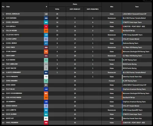 Primo ruggito di Manuel Gonzalez su Izan Guevara nella mini-gara seguita a due stop per incidenti. Cronaca e classifiche.