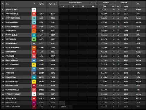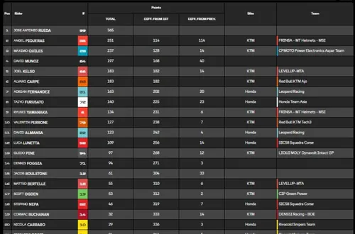 Taiyo Furusato scrive anche il suo nome nel libro dei vincitori di GP, alla fine di una gara condotta con sicurezza e senza sbavature, dal via fino alla bandiera a scacchi. Un successo sfiorato in più occasioni, ma appunto solo visto da vicino, fino ad oggi. Maximo Quiles chiude i conti ed è ufficialmente Rookie dell'Anno, delusione invece per l'eroe di casa Hakim Danish. Va poi a prendersi tutto l'affetto del pubblico, ma è una piccola consolazione visto che s'è dovuto ritirare per un problema tecnico... Una gara scattata dopo una lunghissima attesa per il