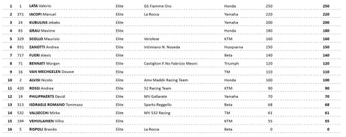 Gara unica con Riccardo Pini (TM, categoria Fast) che sorprende tutti e si assicura l'holeshot, mentre Valerio Lata (Honda) scatta con cautela, senza forzare troppo nelle prime battute, vista anche appunto la situazione della pista. Ma dopo qualche giro eccolo protagonista assoluto: attacco, fuga e vittoria per questo primo round MX Prestige. Al secondo posto ci sarà Manuel Iacopi (Yamaha), mentre il terzo gradino del podio si decide all'ultimo, a conclusione di una battaglia serrata tra Jekabs Kubulins (Yamaha) e Maxime Grau(Honda, Team Maddii), quinta posizione infine per Maurizio Scollo (KTM).