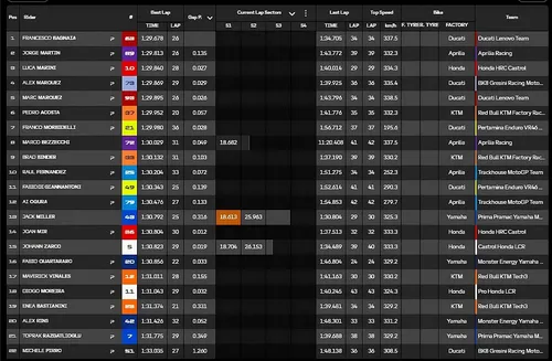 Fermin Aldeguer infortunato), ma come detto in precedenza i riferimenti sono ancora da prendere con le pinze. Il lavoro continua, si riparte a breve per poi continuare fino alle 18:00, le 12:00 in Italia. Di seguito i tempi finora.