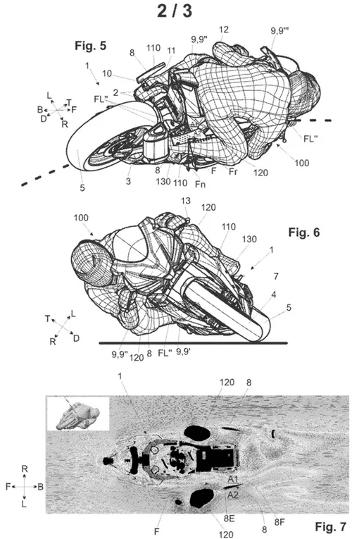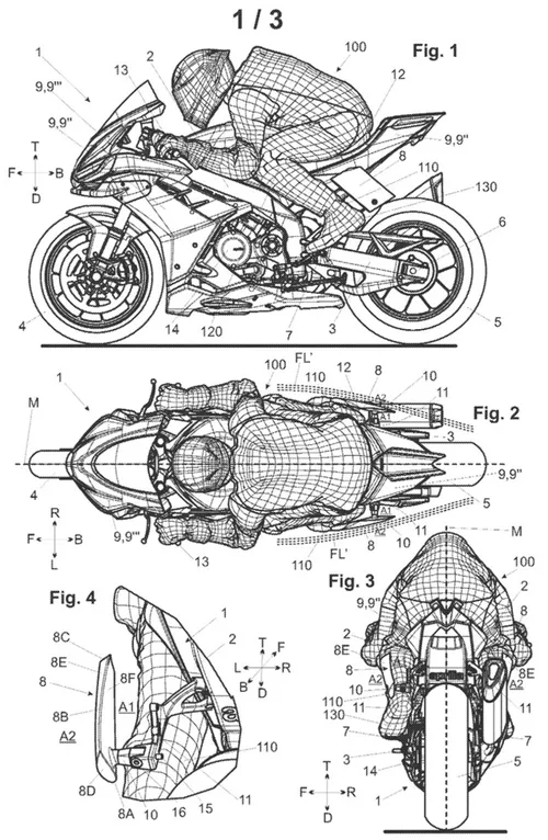 Secondo il brevetto pubblicato all'inizio di quest'anno, il sistema mira a migliorare l'aerodinamica di una motocicletta sportiva utilizzando appendici posizionate dietro le gambe del pilota. Queste appendici sono situate nella parte posteriore della motocicletta, all'incirca all'altezza dei polpacci/cosce del pilota. Piaggio spiega di voler fare questo: