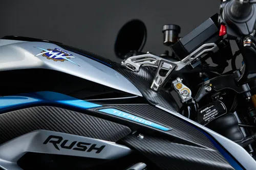 Nel 2026, la Rush raggiunge un nuovo apice con l’edizione Titanio, rifinita nell’esclusiva livrea Nero Intenso abbinata ad accenti Argento Magnum e Blu Titanio. Il nome “Titanio” trae ispirazione diretta dall’ampio utilizzo di componenti in titanio spazzolato, rafforzando l’identità premium e orientata alle prestazioni della moto. Tutte le superfici verniciate presentano una finitura completamente lucida, che esalta la profondità dei colori e valorizza le linee affilate e muscolose della motocicletta. Questo trattamento high-gloss è volutamente contrastato da componenti in carbonio con effetto twill opaco, creando un sofisticato gioco di luce, texture e materiali. Il risultato è una composizione visiva di grande impatto che mette in evidenza la costruzione avanzata della Rush Titanio ed esprime la tipica fusione