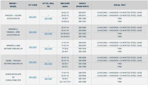I paraoli Polini in elastomero fluorurato FKM garantiscono una tenuta superiore anche nelle condizioni più estreme. Resistenti a carburanti, oli sintetici, additivi e temperature elevate, sono la scelta ideale per motori ad alte prestazioni e utilizzi gravosi. Le eccellenti proprietà chimiche e termiche del materiale assicurano tenuta perfetta e durata nel tempo, anche in condizioni d’esercizio critiche. Tutti i componenti del kit sono acquistabili anche singolarmente, permettendo di scegliere la soluzione più adatta alle proprie esigenze: revisione completa o sostituzione mirata di cuscinetti e paraoli. Il tutto con un rapporto qualità / prezzo estremamente competitivo, che rende i Kit Revisione Polini una scelta vincente sia per l’appassionato sia per il professionista.